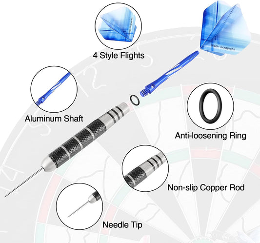 Professional Steel Tip Darts Set - 12 Pack, 24g Metal Darts with 20 Flights (4 Styles) and 12 Aluminum Shafts